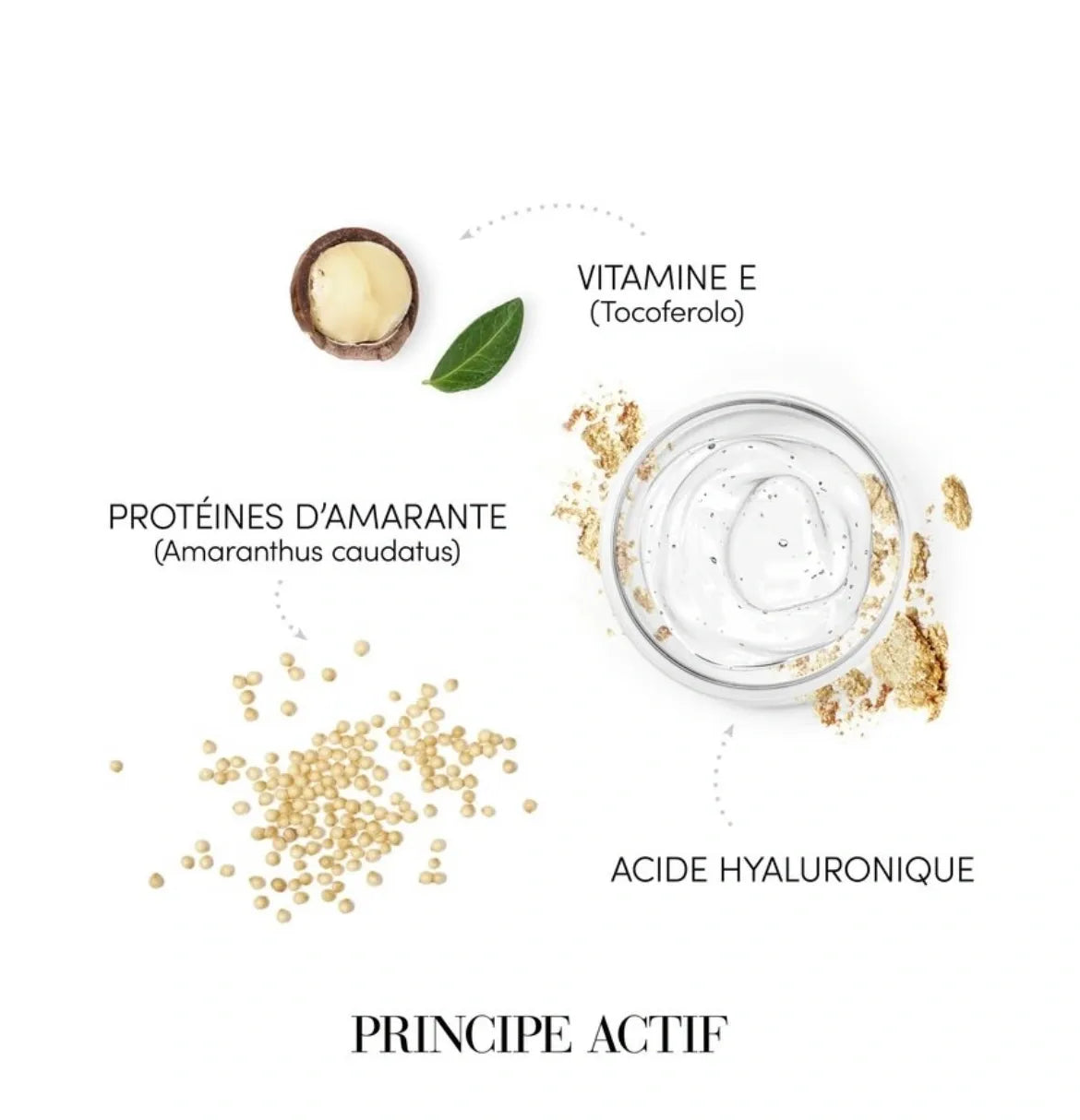 • Collagène :Renforce les cheveux en agissant à la fois à la surface et à l'intérieur de la fibre capillaire, améliorant leur vitalité face aux agressions extérieures.