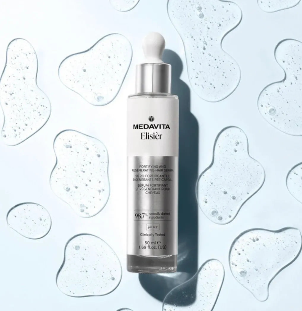 Découvrez le sérum fortifiant et régénérant Elisièr de Medavita, conçu pour apporter force, brillance et volume à vos cheveux tout en préservant leur vitalité. Adapté à tous les types de cuir chevelu, ce soin quotidien est particulièrement bénéfique pour ceux qui souffrent de cheveux fins ou de chute de cheveux.
